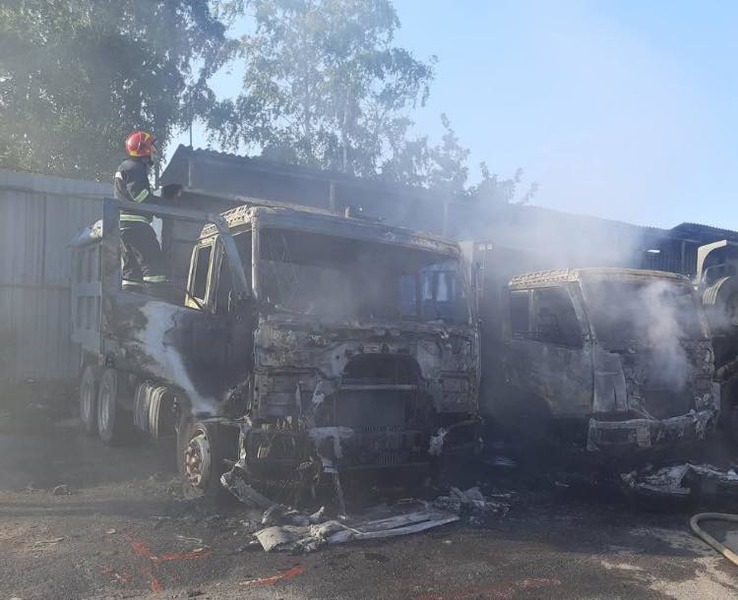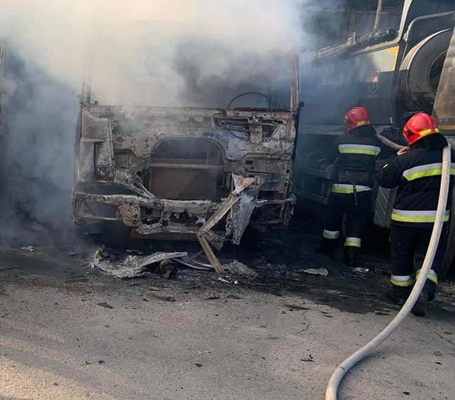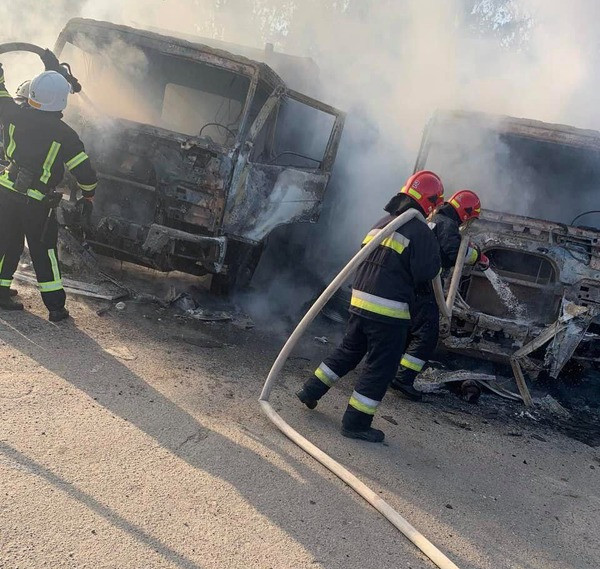 Ймовірна причина виникнення загоряння - несправність електричної системи однієї з вантажівок. До ліквідації пожежі від ДСНС залучалося 15 осіб особового складу та три спецавтомобілі", - йдеться у повідомлені.