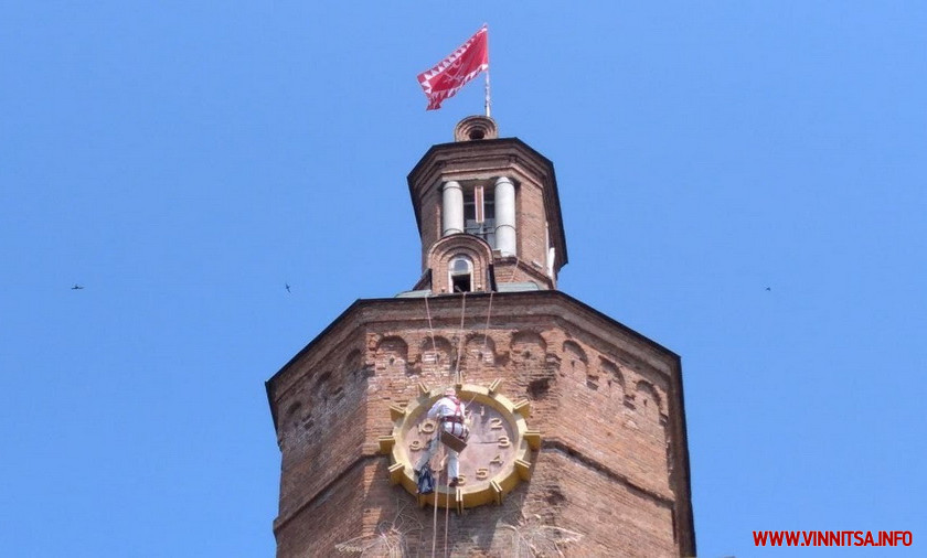 «Друзі, настав час причепурити вигляд центрального годинника на Вінницькій вежі! До кінця тижня сертифіковані промислові альпіністи працюватимуть над пофарбуванням циферблату часоміра зі сторони площі Європейської.