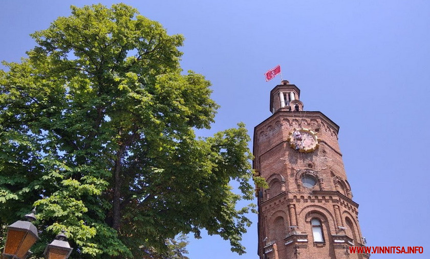 У Вінниці на деякий час зупинили роботу годинника, що висить на Вежі Артинова. Там до кінця тижня фарбуватимуть циферблат часоміра зі сторони площі Європейської.