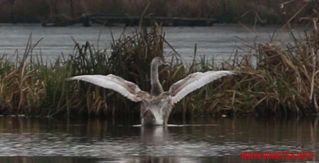 Сьогодні, 24 листопада, журналіст Вінниця.info на озері бачив лише молодого птаха, дорослих не видно.