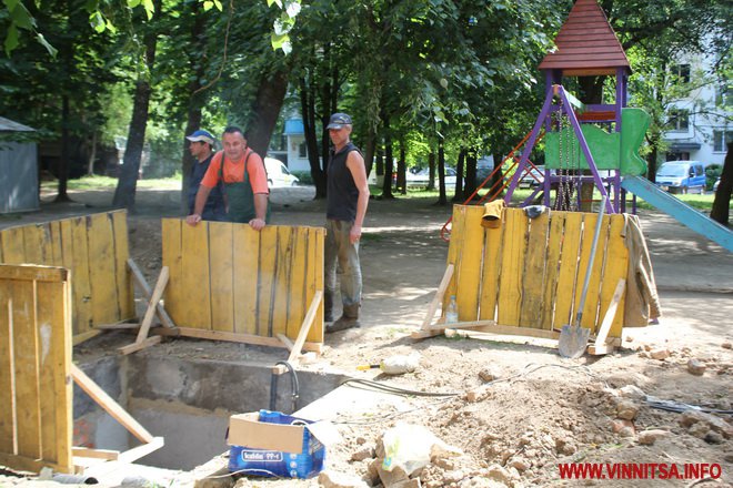 Сьогодні у дворах між будинками №13,15 та №7,9,11 автомобілі вже не паркуються на зелених зонах, бо їм облаштували парковки на 55 місць. Тут ремонтують тепломережі і готуються до «глобального» асфальтування. Працюють бульдозери. А лавочки, урни і сушки чекають на оновлення, їх стилізують під один формат.