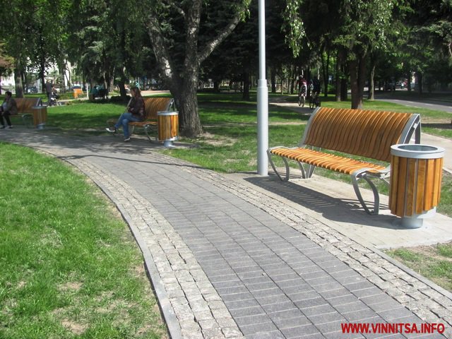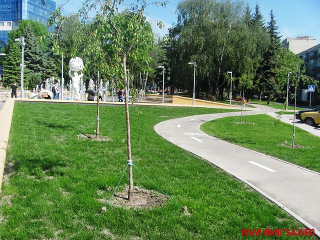 Навколо «сонячної системи» вимощені доріжки, поручні та вмонтовані лавочки. Ще в березні тут посадили «плакучі» сакури.