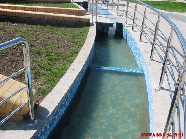 Як і на площі Могилка, фонтан пішохідний – струмені води б’ють знизу доверху. Поміж ними можна пройтися.