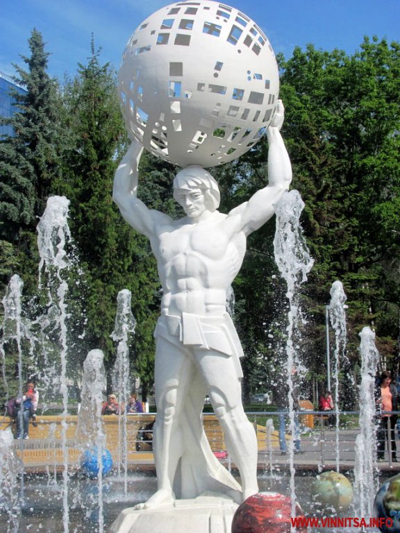 В центрі композиції - скульптура Атланта, що тримає Сонце. Навколо нього – вісім планет: Меркурій, Венера, Земля, Марс, Юпітер, Сатурн, Уран, Нептун. Ближче до алеї, розмістили Плутона.