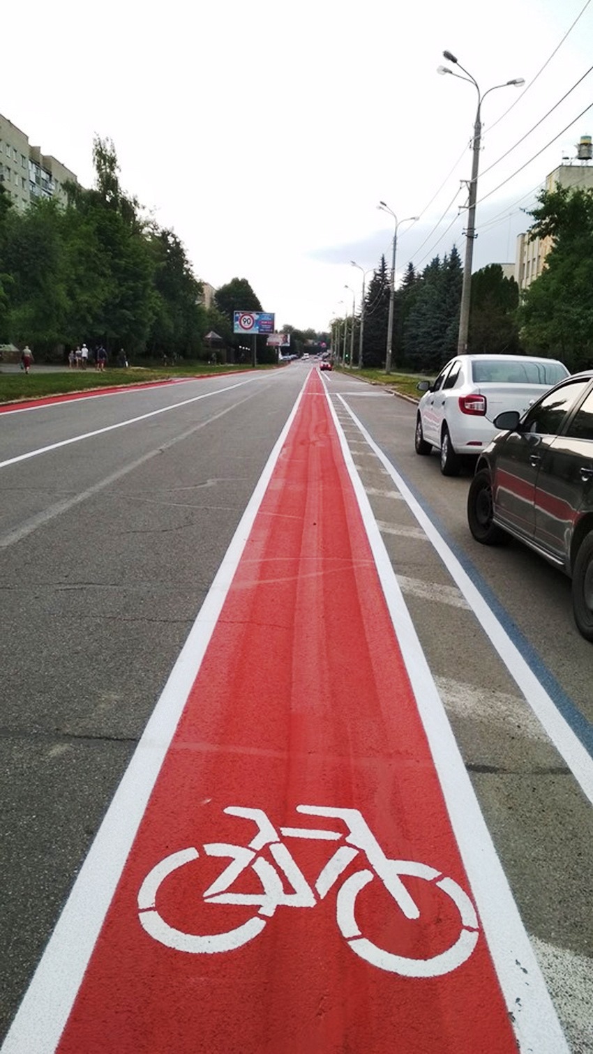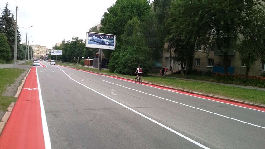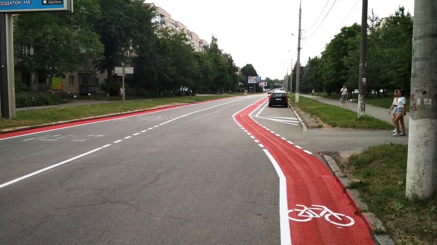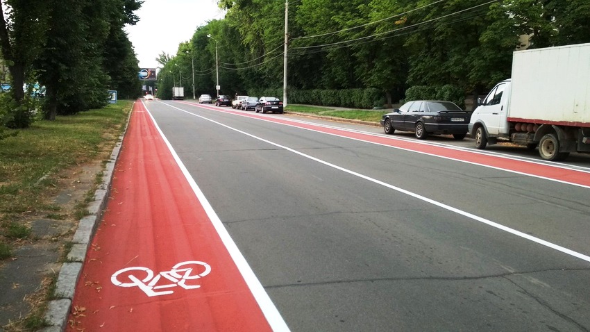 Радник міського голови Віктор Перлов зазначає, що це перша в Україні велосмуга виділена кольором.