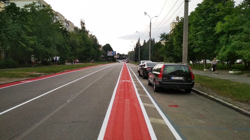 У Вінниці на вулиці Воїнів-Інтернаціоналістів облаштували велосмугу. Вона має червоний колір, що привертатиме увагу водіїв.