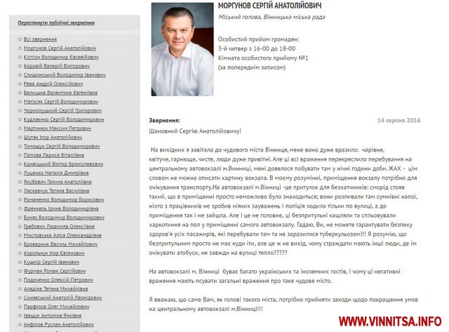 На початку літа до Вінниці приїхало багато жебраків з інших областей, з того самого Закарпаття. Причина банальна – в нас добрі люди і дають гроші не питаючи на що. Наприклад, на Зелені свята у Вінницю наїхало чоловік 200 жебраків із Закарпаття, ми коли їх питали, чому сюди їдете, вони кажуть що в наших людей до них інше ставлення, бо там, їм місцеві не дають грошей і забороняють їм випрошувати, постійно роблять зауваження, а тут – руку протягнув і хто не йде, то кине гривню, дві… Ми намагаємось відправляти цих жебраків назад, в їх області», - розповідає Сергій Синявський.