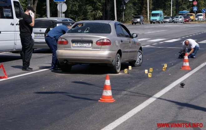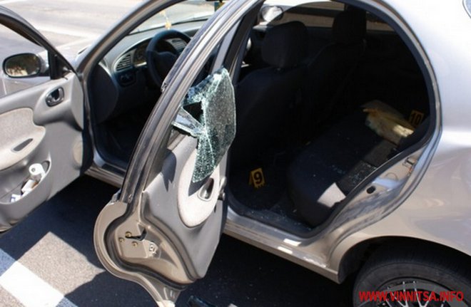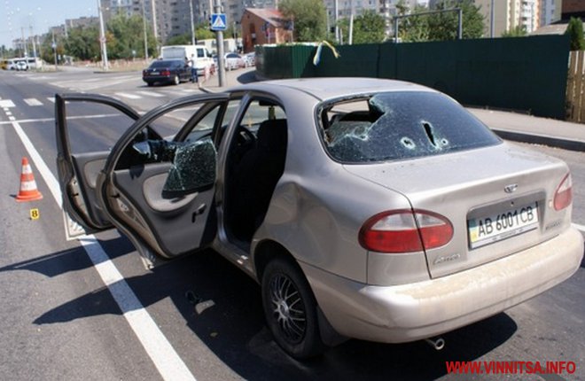 10 серпня у Вінниці на перехресті Барського шосе та вулиці Келецької з вогнепальної зброї невідомі особи з автівки розстріляли автомобіль «Daewoo».