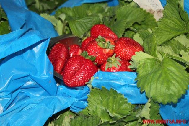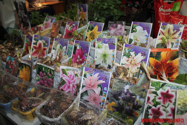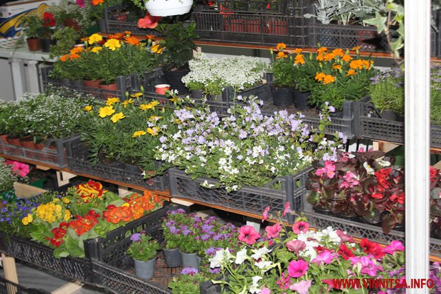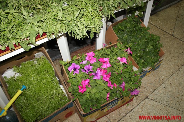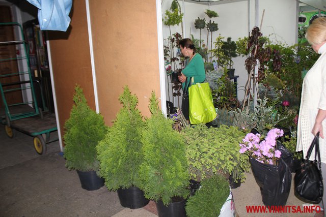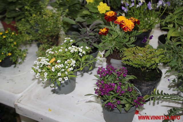 На столах привертають увагу покупців достиглі ягоди полуниці, розкішні квіти петунії, бегонії, фіалки, а також композиції з кактусів.