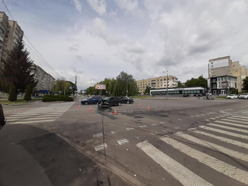 Транспортні засоби зазнали значних ушкоджень. На щастя, постраждалих в аварії немає. Внаслідок удару Volkswagen виїхав на тротуар. Очевидці зазначають, що жінка з дівчинкою, які в цей час рухалися тротуаром, дивом не потрапили під іномарку.