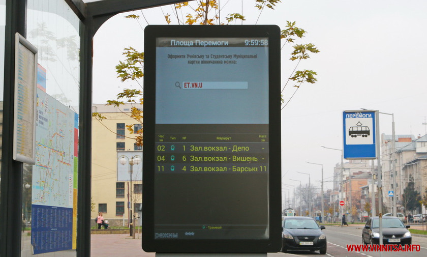 Зараз у місті лише 7 інформаційних табло – 6 на Замостянській, 1 на зупинці громадського транспорту «Театр Садовського». На останній зупинці інформаційне табло уже працює. Вінничани можуть відслідкувати за часом, коли приїде маршрутка чи тролейбус, які на борту мають GPS-маячки.