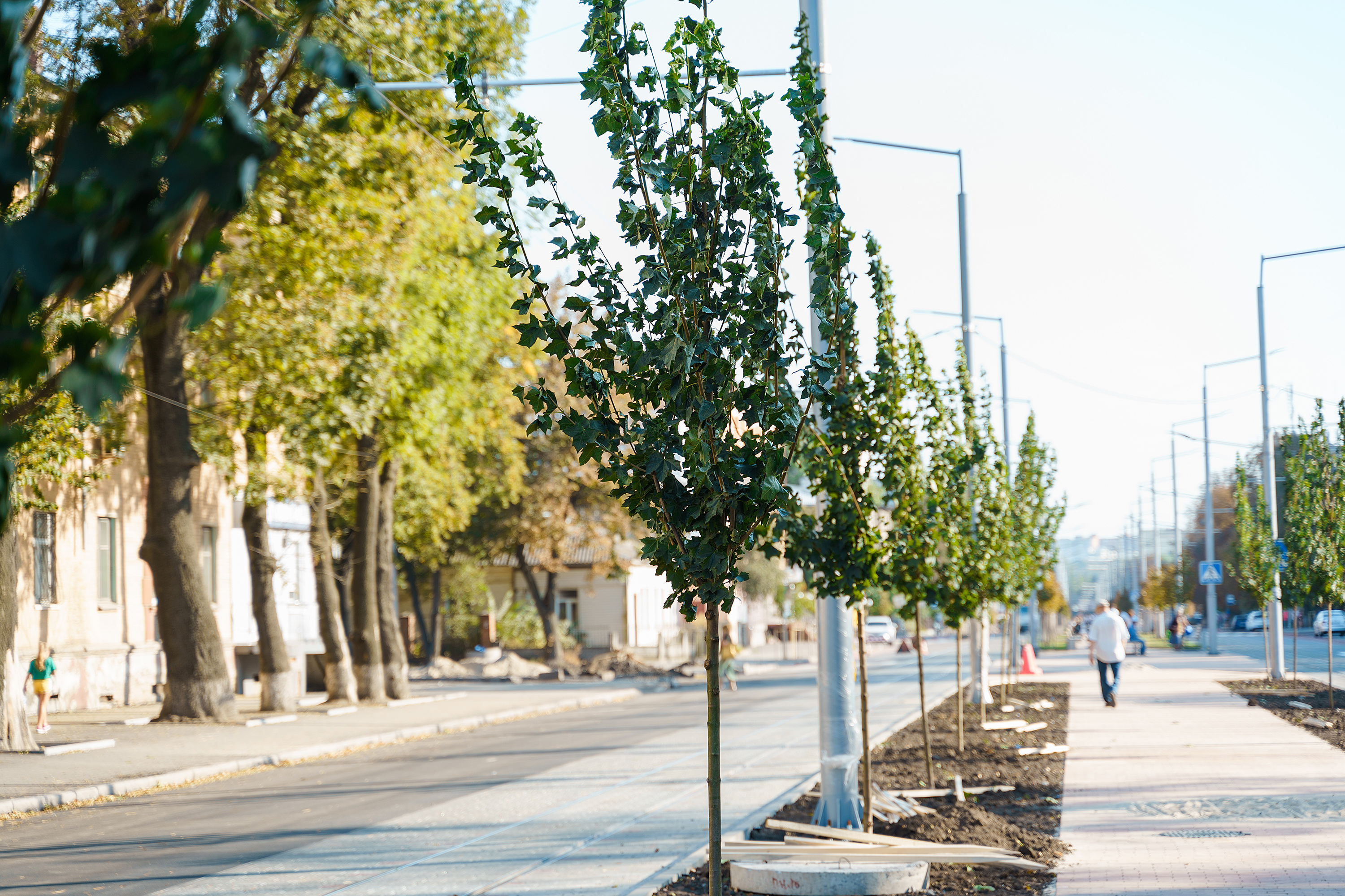 Оновлення вулиці також передбачало осучаснення зеленої зони на алеї та тротуарах, аналогічно за прикладом озеленення на першій черзі комплексної реконструкції вулиці.