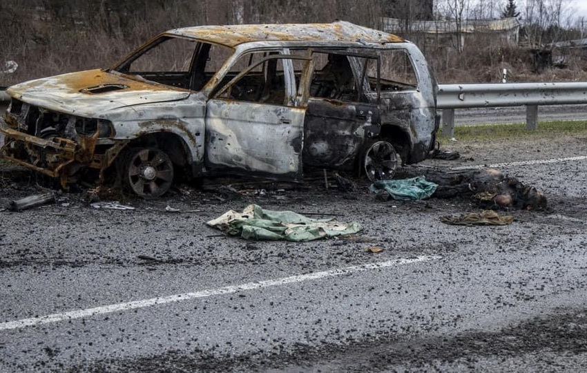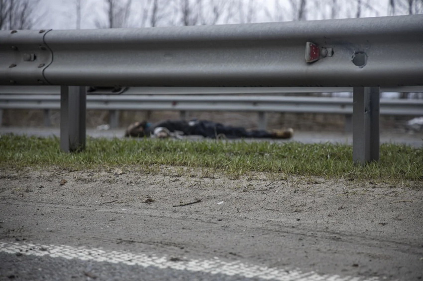 «Дорога поряд із селом Дмитрівка на Житомирський трасі всіяна трупами. Людей розстрілювали росіяни, у декого з убитих звʼязані руки. Ми показуємо ці фото, бо хочемо, аби весь світ знав про геноцид», - пише видання.