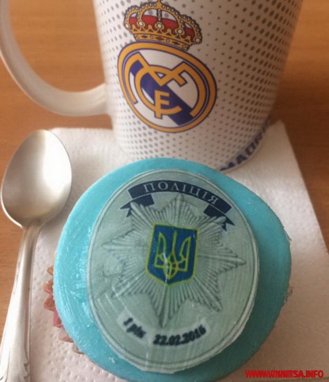 «Наша четверта рота замовила ці унікальні кекси. Там навіть були дати сьогоднішні. Дуже смачні, я з чаєм випив. Зробив фото на згадку. Видно і мою улюблену чашку з логотипом футбольного клубу «Реал Мадрид», - показує в кабінеті Вінниця.info світлину з телефону Редван Усеінов, керівник патрульної поліції Вінниці та готується до першого щорічного звіту свого відомства.