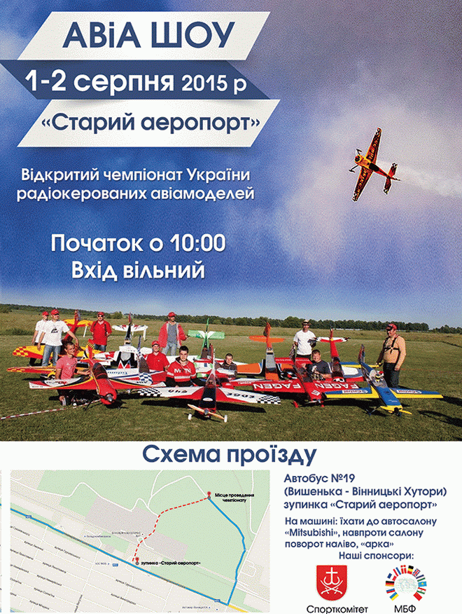 1-2 серпня у Вінниці відбудеться відкритий чемпіонат України з радіокерованих авіамоделей. Дивовижне авіа-шоу розгорнеться у небі над Старим аеропортом.