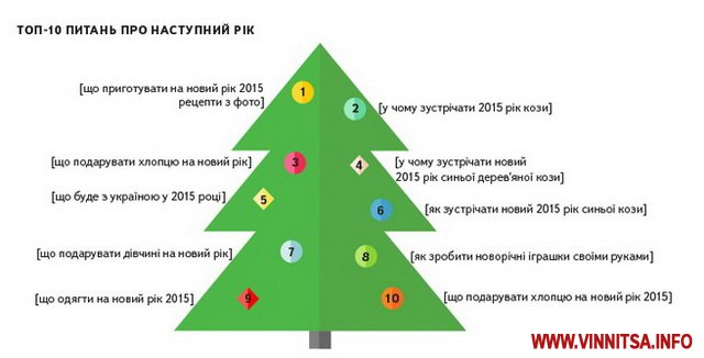 Наприклад, п’ятьма найпопулярнішими новорічними питаннями вінничан у першій половині грудня були: