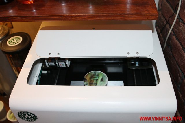 Власник мережі кав’ярень «Starvin Coffee» Ярослав Вільотник розповів, що це єдиний в Україні принтер, який друкує кольорові фотографії на кавових напоях. А ідею вони побачили на відео одного із стартапів, після чого замовили принтер і собі.