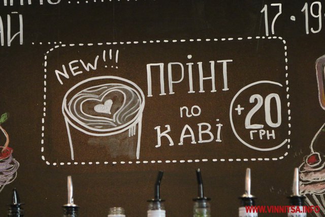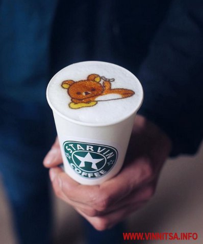 У Вінницькій кав’ярні, що на вулиці Пирогова, відвідувачам пропонують незвичайну каву. Лише там можна замовити філіжанку напою з власним портретом з кавової пінки. Процес приготування займає кілька хвилин. Бариста наносить зображення на пінку за допомогою спеціального принтера. Аби замовити оригінальний напій з власним портретом, необхідно сфотографуватися у кав’ярні, чи завантажити фото з телефону. Вартість такої послуги 20 гривень. Тобто, вартість напою і плюс 20 гривень за нанесення зображення.