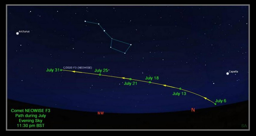 До кінця липня жителі Північної півкулі зможуть спостерігати за кометою «Neowise». Її особливість у тому, що комета помітна неозброєним оком. Найближчої відстані від землі космічний об’єкт має досягнути 23 липня.