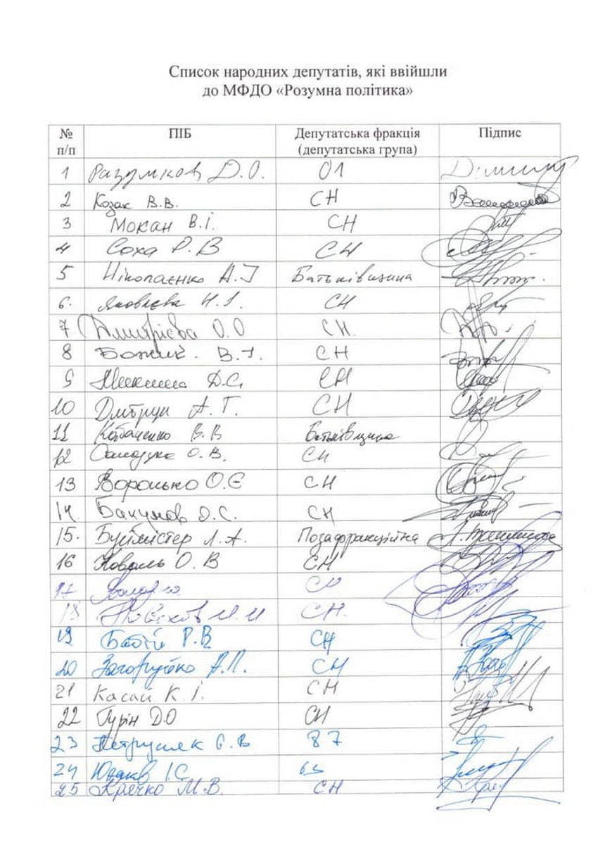 «Звернення про створення міжфракційного об'єднання «Розумна політика» вже знаходиться на розгляді керівництва Парламенту. Наступного пленарного тижня головуючий на засіданні має офіційно оголосити про його створення», - написав Разумков.
