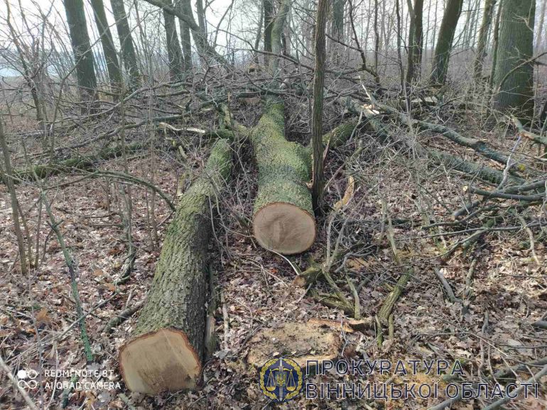 На Вінниччині директора лісогосподарського підприємства підозрюють у незаконній вирубці дерев. Цим самим він завдав шкоди навколишньому природному середовищі майже на 1 мільйон 400 тисяч гривень.