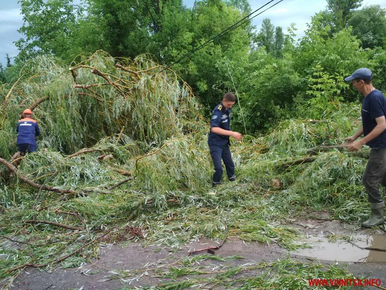 Вітер тaкож покидaв деревa нa проїжджі чaстини у селaх Гуменне, Лукa-Мелешківськa тa Писaрівкa Вінницького рaйону, в селі Чуків Немирівського рaйону, Селищі Тиврівського рaйону. У Вінниці нa вулицях Київськa, Ушaковa, Юківкa тa Волошковa.