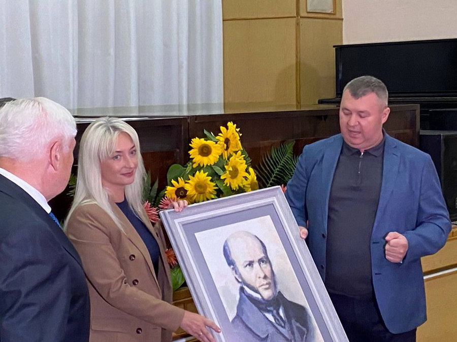 Під час загальних зборів колективу Перший заступник начальника ОВА Наталя Заболотна та голова обласної Ради Вячеслав Соколовий подарували співробітникам музею вишитий портрет Миколи Івановича Пирогова, створений видатною вінничанкою, заслуженою майстринею народної творчості України Любов’ю Шаламай.