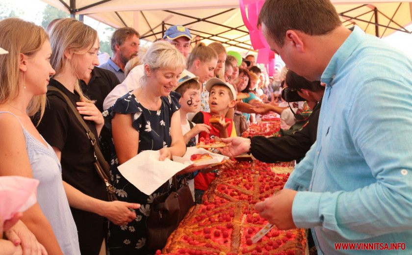 Сергій Борзов та Ірина Борзова привітали гостей, а представник Книги рекорду України вручила голові Северинівської громади Василю Малярчуку «посвідчення» рекорду України про найдовший пиріг з малиною.