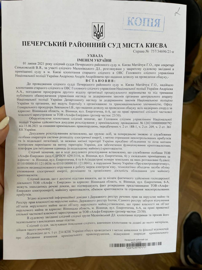 Звістка про те, що СБУ викрило у Вінниці чи не найбільшу ферму з майнінгу криптовалют, облетіла всю Україну і не тільки. Адже Вінниччина відома виробництвом сільгосппродукції, а не біткойнами. Згадка про те, що «ферма» розташовувалася на території АТ «Вінницяобленерго», була просто приголомшливою. Речники СБУ стверджували, що ферма крала електроенергії на 5-7 млн грн щомісяця, поставивши під загрозу відключення цілих кварталів Вінниці. Окрім того, пресслужба СБУ заявила про можливу причетність до оборудки посадових осіб «Вінницяобленерго».