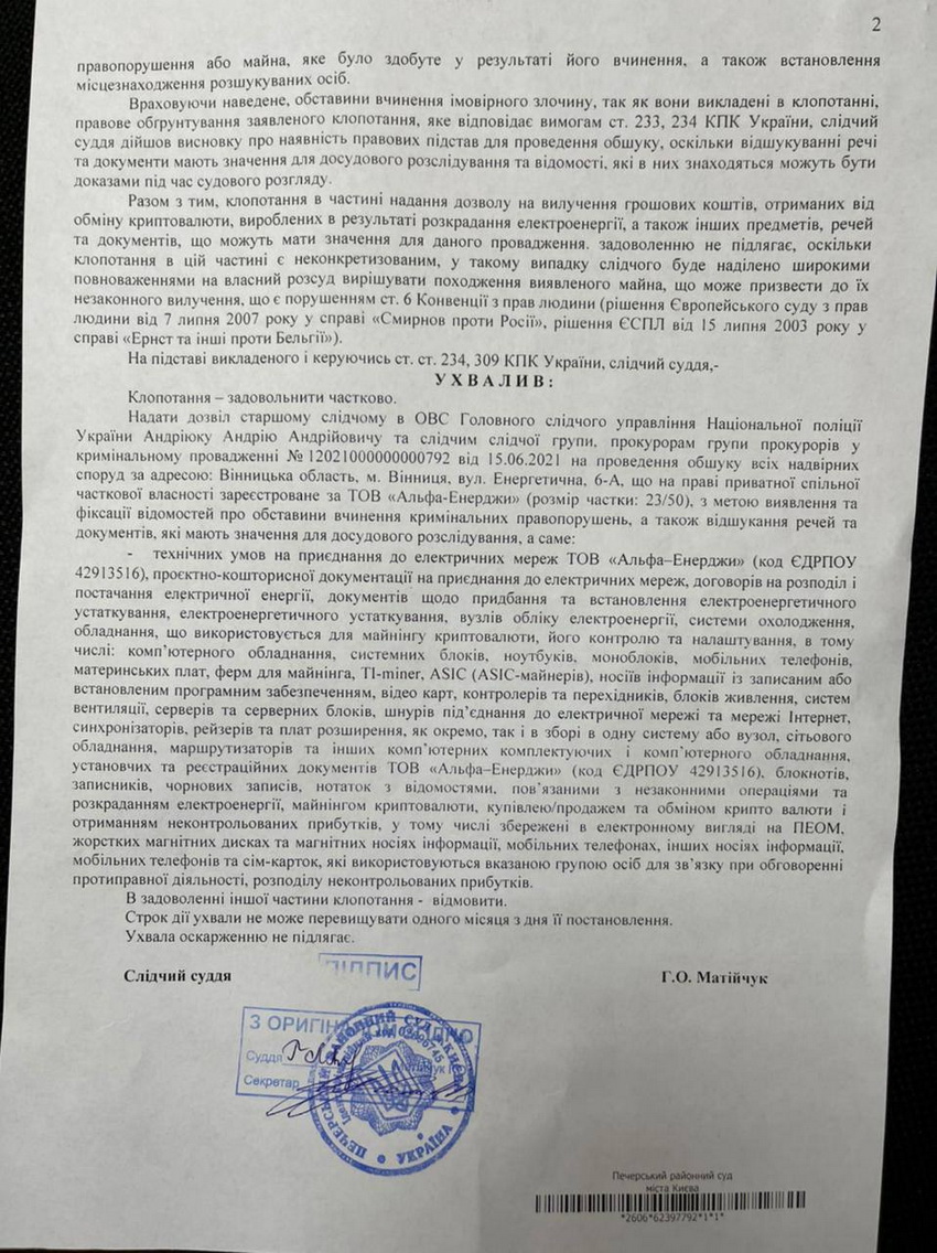 Щодо вилучення обладнання. Не зважаючи на рішення Печерського районного суду, слідчий вилучив все обладнання ІТ компанії, та фактично заблокував її роботу на невизначений термін. Коли і в якому стані обладнання буде повернуте - невідомо. А от крадіжка електроенергії – реальна чи, як у даному випадку, уявна, є традиційною «зачіпкою» для правоохоронців, які мають інтерес до підприємств, пов`язаних з ІТ-індустрією. І ця практика, нажаль, в Україні вже стала традицією. Варто зазначити, що не зрозуміло, з яких мотивів НКРЕКП підтримало слідчого та заяву СБУ щодо Вінницяобленерго адже у висновку експертів із Держенергонагляду, яких було залучено до слідчих дій в якості фахівців, було вказано, що зауважень до обліку електроенергії не виявлено.