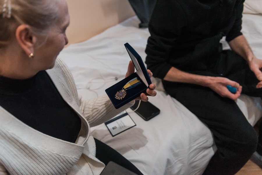 Віталій Шумей, який у лавах ЗСУ служить з 2014 року. У лютому-березні 2022 обороняв Київщину, Чернігівщину, потім – схід країни. У серпні отримав поранення під Авдіївкою. Лікарі діагностували мінно-вибухову травму та перелом черепа з обох сторін. Понад п'ять місяців чоловік прикутий до ліжка. Весь цей час разом із ним батько, який намагається його виходити. Він і отримав синову відзнаку.