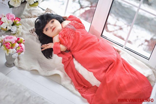 Фотосесія пройшла у різдвяному стилі. Світлану одягнули у рожеву сукню.