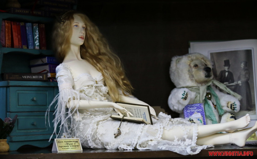 Що також «кидається» в очі у залі – велика колекція ляльок вінничанки Каті Калашнікової. Вишукано одягнені ляльки різні за розміром розмістили у кількох скляних шафах. Тут і всім відомий Містер Бін, а також багато антикварних ляльок.