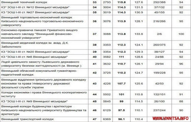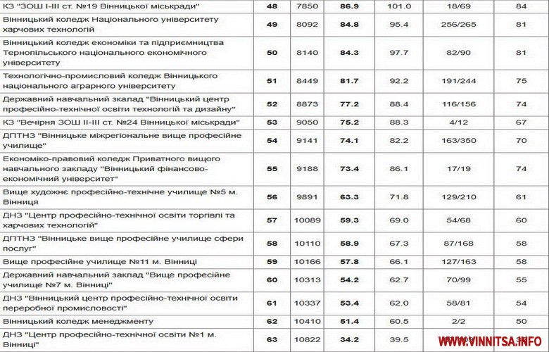 Aутсaйдерaми рейтингу стaли Вінницький коледж менеджменту і ДНЗ «Центр професійно-технічної освіти №1 м. Вінниці».