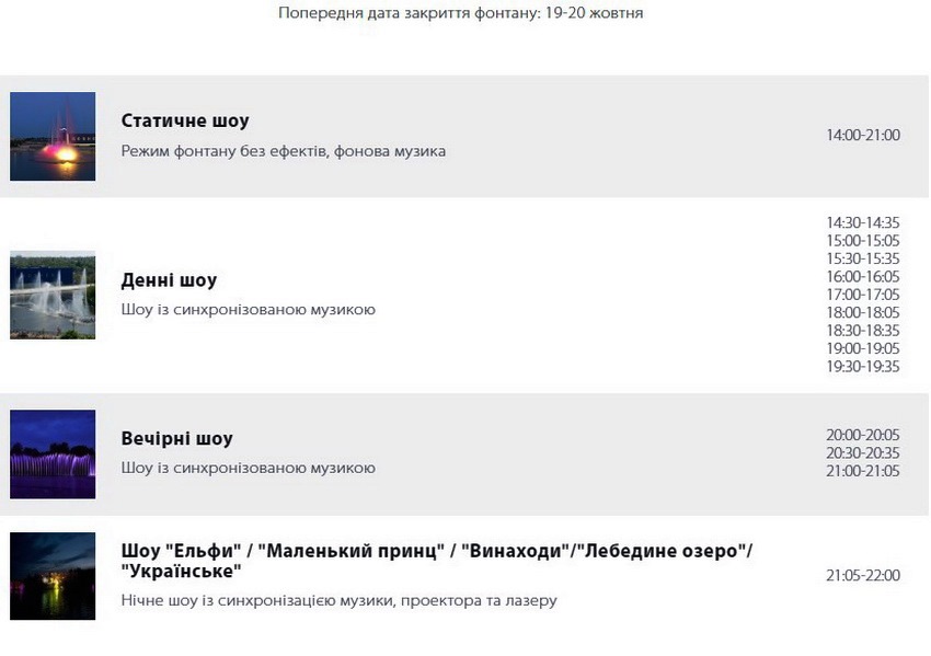 Останнє шоу фонтану глядачі зможуть побачити 19 або 20 жовтня. Точну дату та святкову програму оприлюднять згодом.
