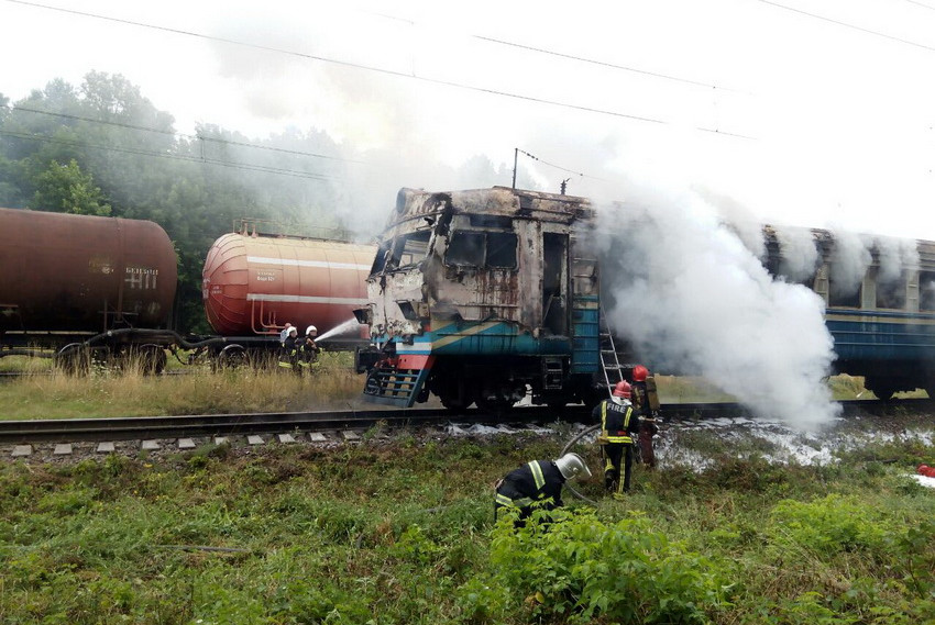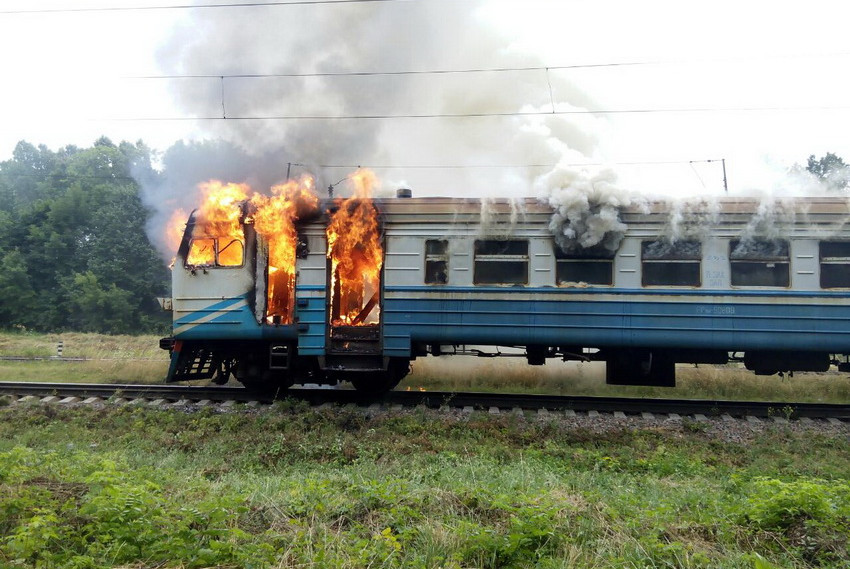 31 липня у Вінницькій області, неподалік Жмеринки, на ходу загорівся потяг. Один вагон електрички сполученням «Козятин – Жмеринка» охопив вогонь.