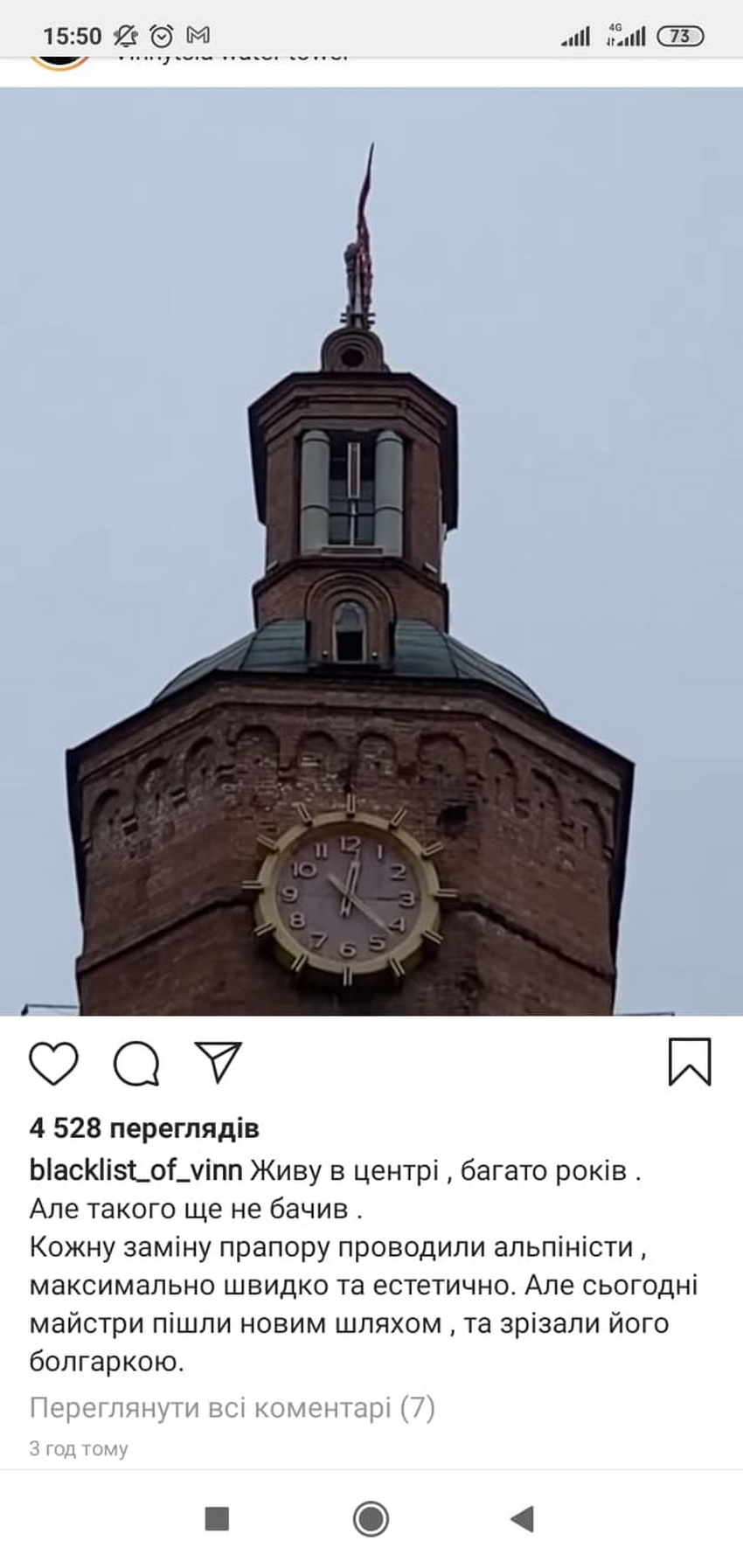 На одному з пабліків у соціальних мережах навіть виставили відео, яке прокоментували, що флагшток, а він також є громовідводом, який встановили у 1980-х роках, зрізали болгаркою.
