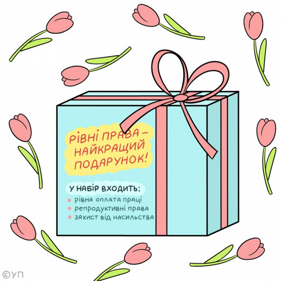 Саме в цей час у суспільстві пропагандистська машина формує два ґендерні образи: «чоловіка-захисника», якого вітають 23 лютого, і турботливої жінки – дружини, сестри, матері, яким потрібно подякувати за обід, чисті шкарпетки і випрасуваний одяг. Згадки про боротьбу за власні права були забуті.