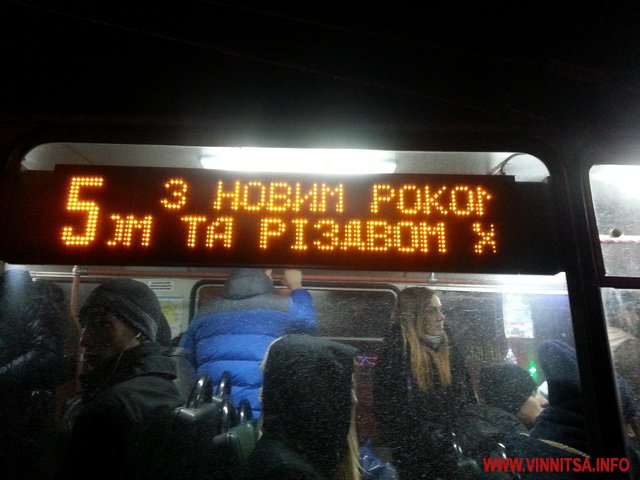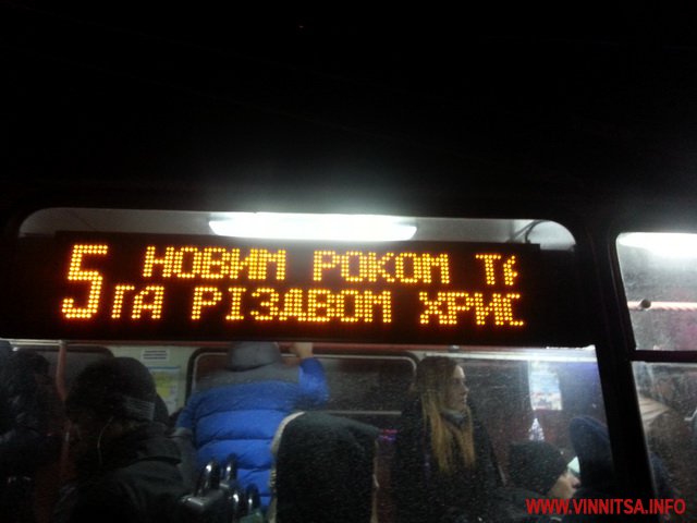 До свят громадський транспорт Вінниці прикрасили гірляндами, новорічною символікою та привітаннями. У тролейбусах біля номеру маршруту «пустили стрічку» з святковим привітанням: «З Новим роком та Різдвом Христовим», але як виявилось, вітання сподобалось не всім пасажирам, бо через фразу не видно напрямку руху маршруту.