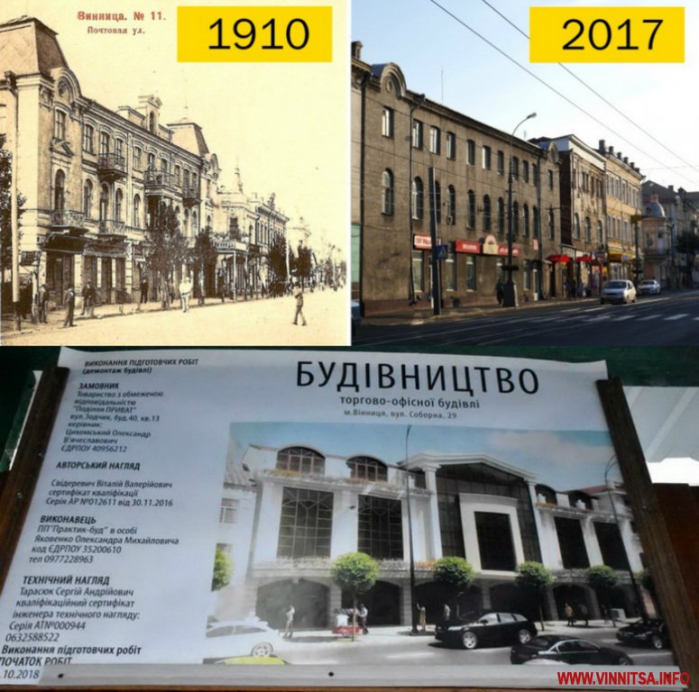 Нагадаємо, що в кінці 2017 року виконком Вінницької міської ради надав ТОВ «Поділля Приват» вихідні дані – містобудівних умов та обмежень на проектування торгово-офісної будівлі по вул. Соборній,29 – навпроти костелу капуцинів.