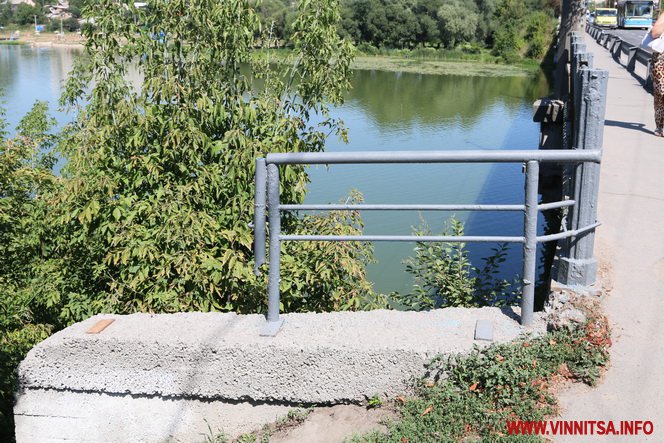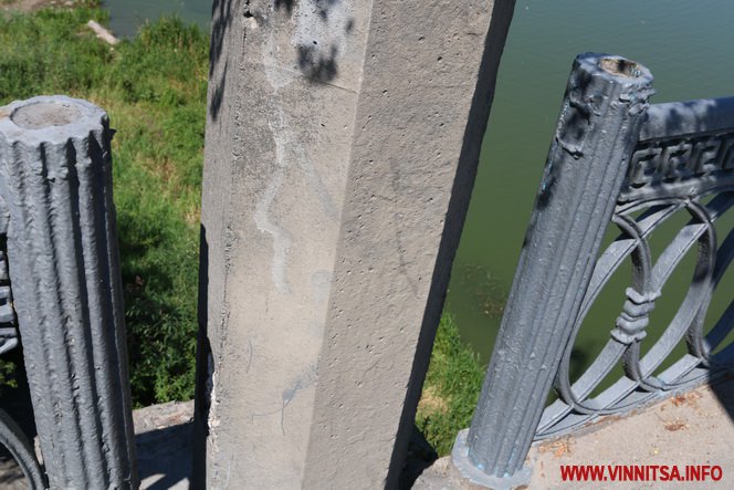 На самому Київському мосту зустрічаються непоодинокі діри, в які люди позасували пляшки та сміття. Відстань між стовпами і металевою огорожею закрита не скрізь. В деяких місцях – ципки позлітали, тому притулятися до забору не варто.