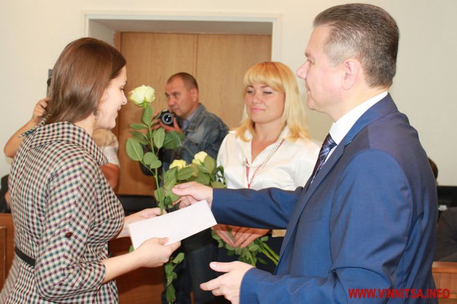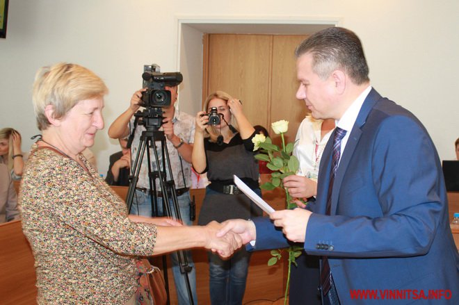 25 вересня у залі засідань міської ради привітали дев’ятьох вінничанок, які народили дітей на День міста. Вони від міської влади отримали в подарунок коляски для своїх малюків. А трьом жінкам, які народили та виховали по шестеро дітей, во. міського голови Сергій Моргунов вручив знаки та посвідчення «Мати-героїня».