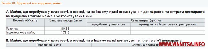У власності нардепа – квартира, площею 80,66 квадратних метри та «інший вид нерухомості» - 178,5 квадратних метри.