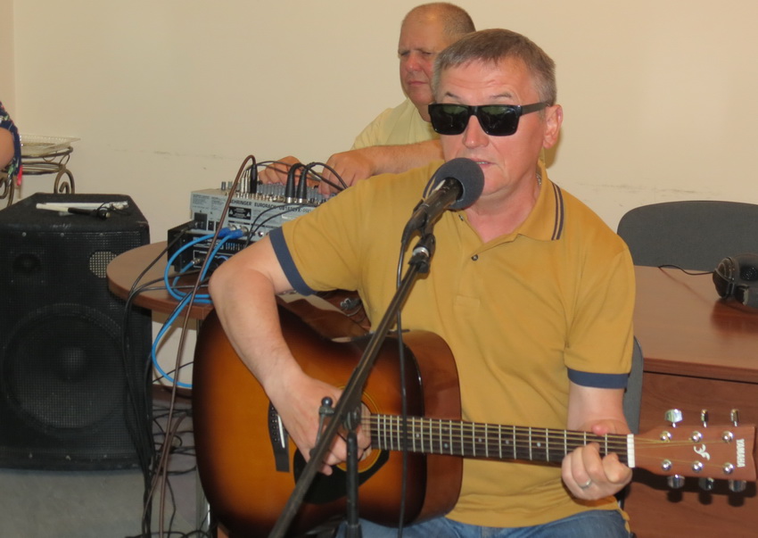 Богдан Коваль із Маріуполя - лауреат багатьох Всеукраїнських конкурсів для незрячих людей, поет, автор пісень і їхній виконавець. Його композиції сповнені ліризму і любові до України. У Вінниці він презентував пісню про знищене місто.