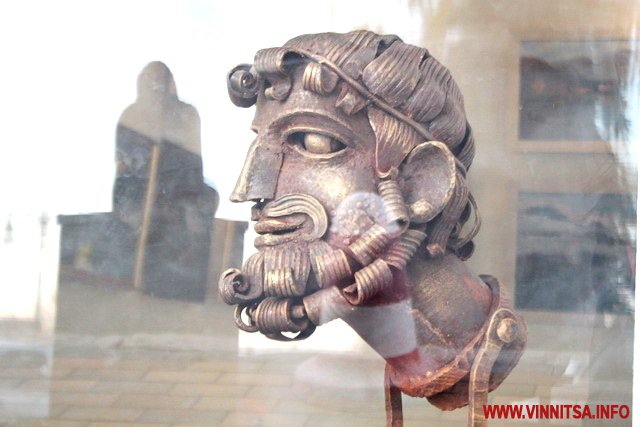 Голова давньогрецького філософа прикрашає вітрину виставкового центру на біля Майдану Незалежності.