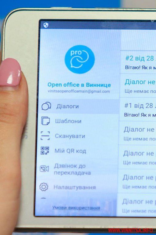 Унікальний мобільний додаток ConnectPRO, розроблений українськими IT-фахівцями, дозволяє спілкуватися в режимі онлайн-чату. Завдяки йому мовлення співробітника «прозорого офісу» перетворюється на текстові повідомлення, які надходять відвідувачу на його смартфон. Окрім того, у програмі є сервіс онлайн-сурдоперекладу - впродовж робочого дня у режимі відеозв'язку доступний сурдоперекладач.