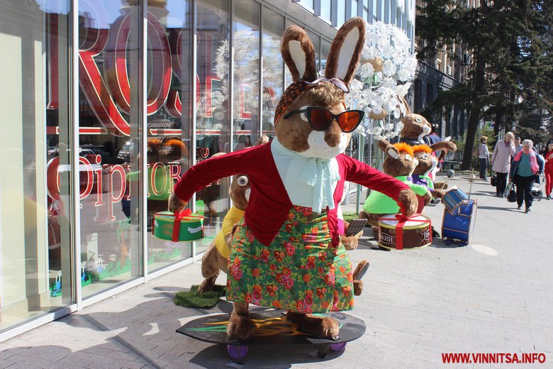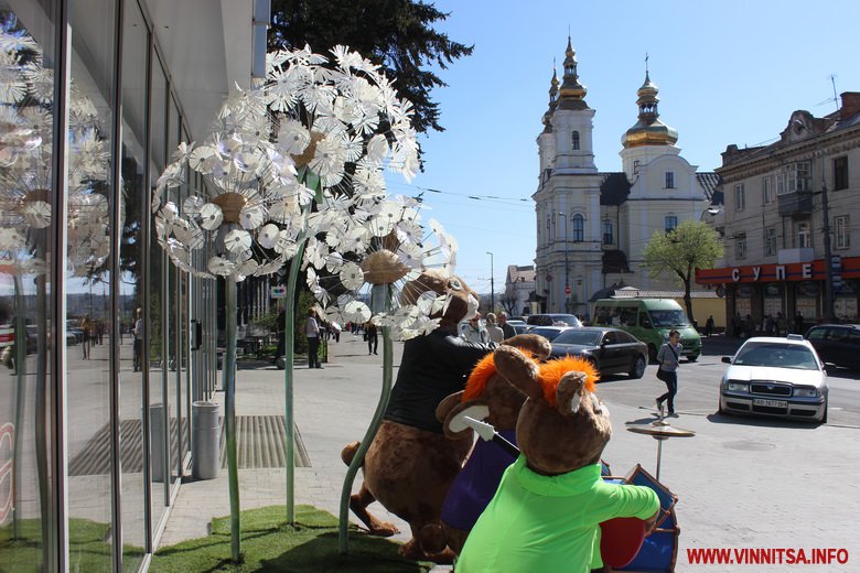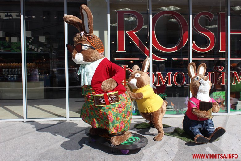 18 квітня у Вінниці по вулиці Соборній біля магазину «Рошен» змінили декорації. Тут встановили шістьох зайців та три велетенські кульбаби.
