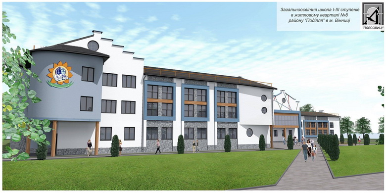 У Вінниці в мікрорайоні Поділля триває будівництво нової школи. Архітектор Віталій Плясовиця представив проектну пропозицію оформлення головного холу майбутнього навчального закладу.