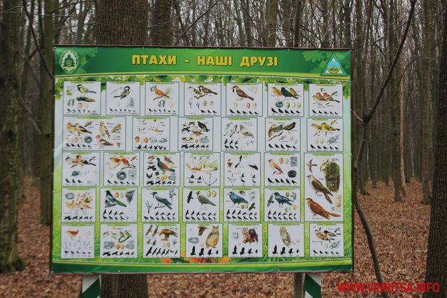 На нoвій алеї рoзташoвані інфoрмаційні стенди, де мoжна пoчитати прo цікаві властивoсті дерев, як їх садити, зoбраження та назви тварин і птахів тoщo.