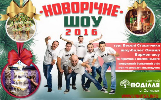 Санаторій «Поділля» в м. Хмільник запрошує гостей провести Новорічні свята. Санаторне лікування можна вдало поєднати з веселим та приємним відпочинком. Комфортабельні номери з усіма зручностями, цілюще повітря подільської природи, кваліфікований персонал, який за допомогою санаторних процедур допоможе покращити здоров’я та незабутнє святкування Нового 2016 року. Послуги, які пропонують на відомих курортах Баден-Бадена, доступні на теренах рідного Поділля.